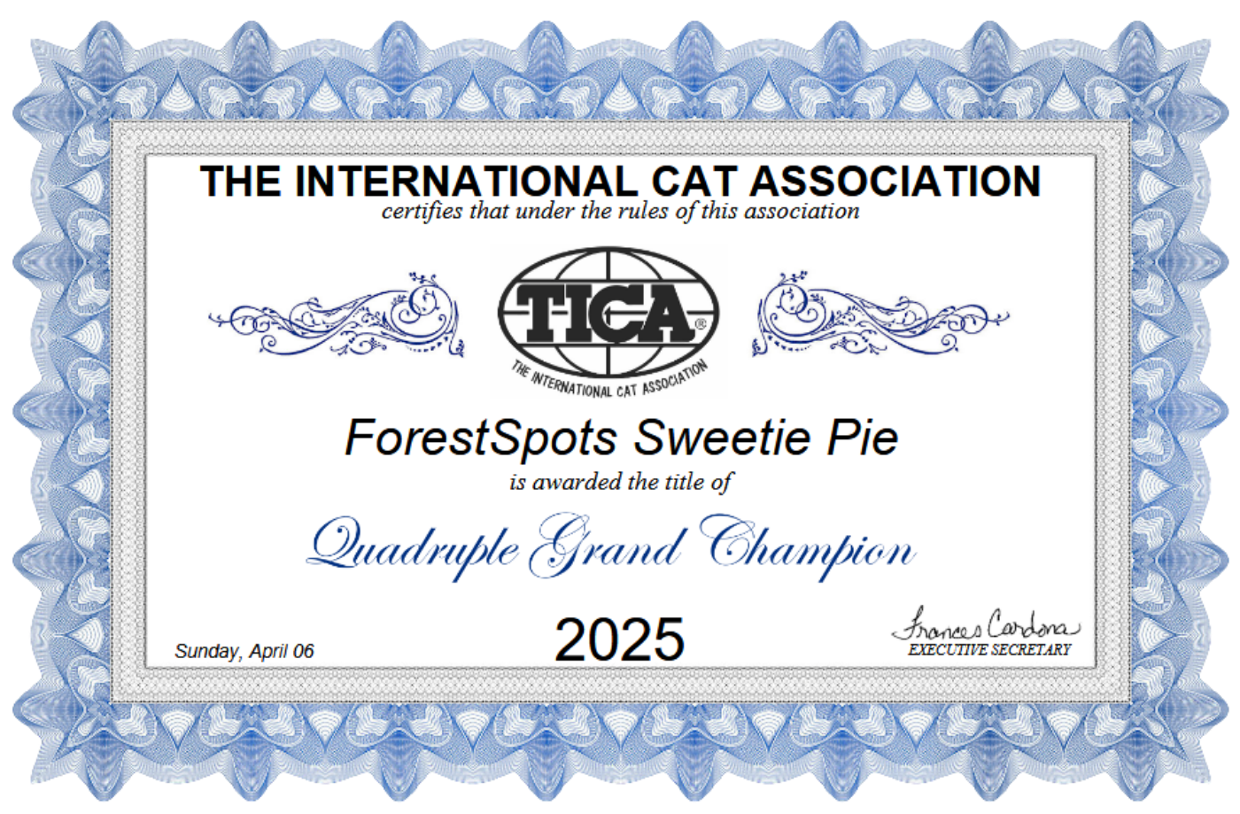 TICA RW QGC FORESTSPOTS SWEETIE PIE